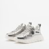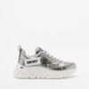 Silver leather sneakers with exclusive DKNY patches. Rubber sole with embossed logo