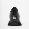 Black slip-on sneakers with DKNY logo on the top.