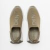 Green slip-on sneakers in nylon fabric. Shiny DKNY print on the upper.