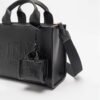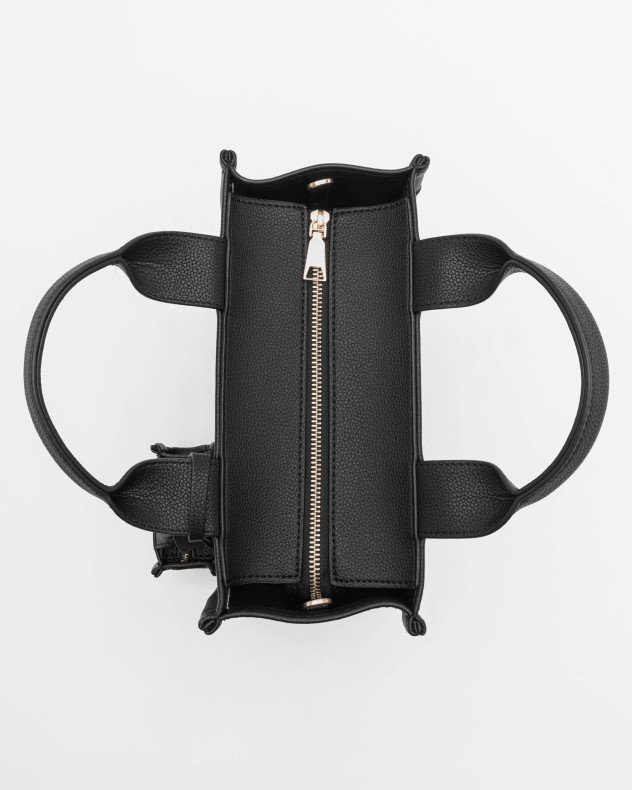 DKNY black crossbody tote bag in grained synthetic leather with engraved logo.