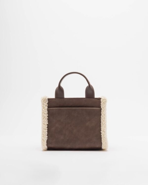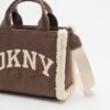 DKNY mid-size tote bag in nubuck faux leather with contrasting white fur inserts.