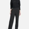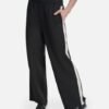 Black trousers made of soft fabric with a wide leg. Contrasting stripe down the sides and DKNY logo detail printed on the leg.