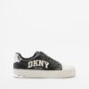 Black sneakers with reinforced toe cap, silver detail on the heel and 3D printed DKNY logo.