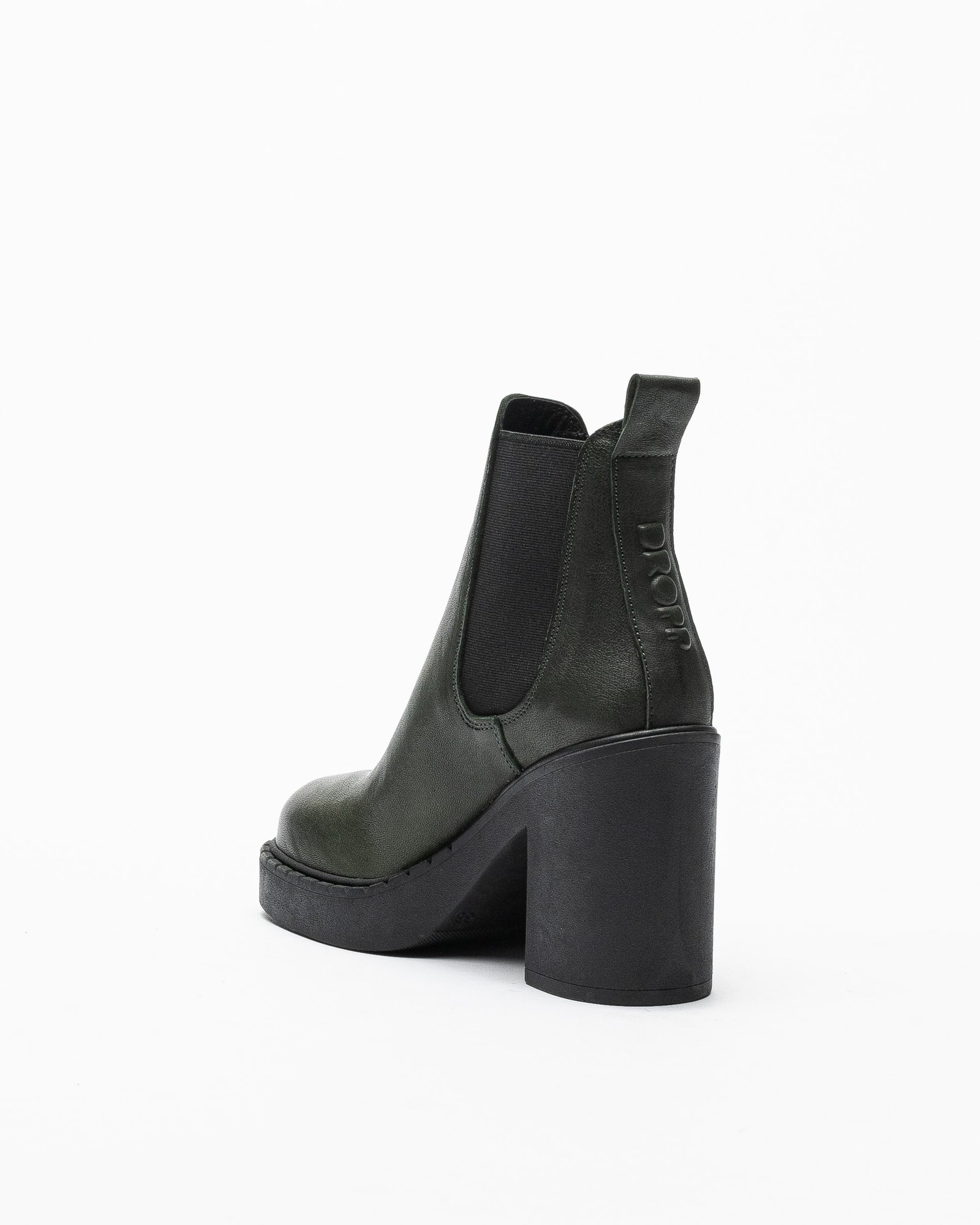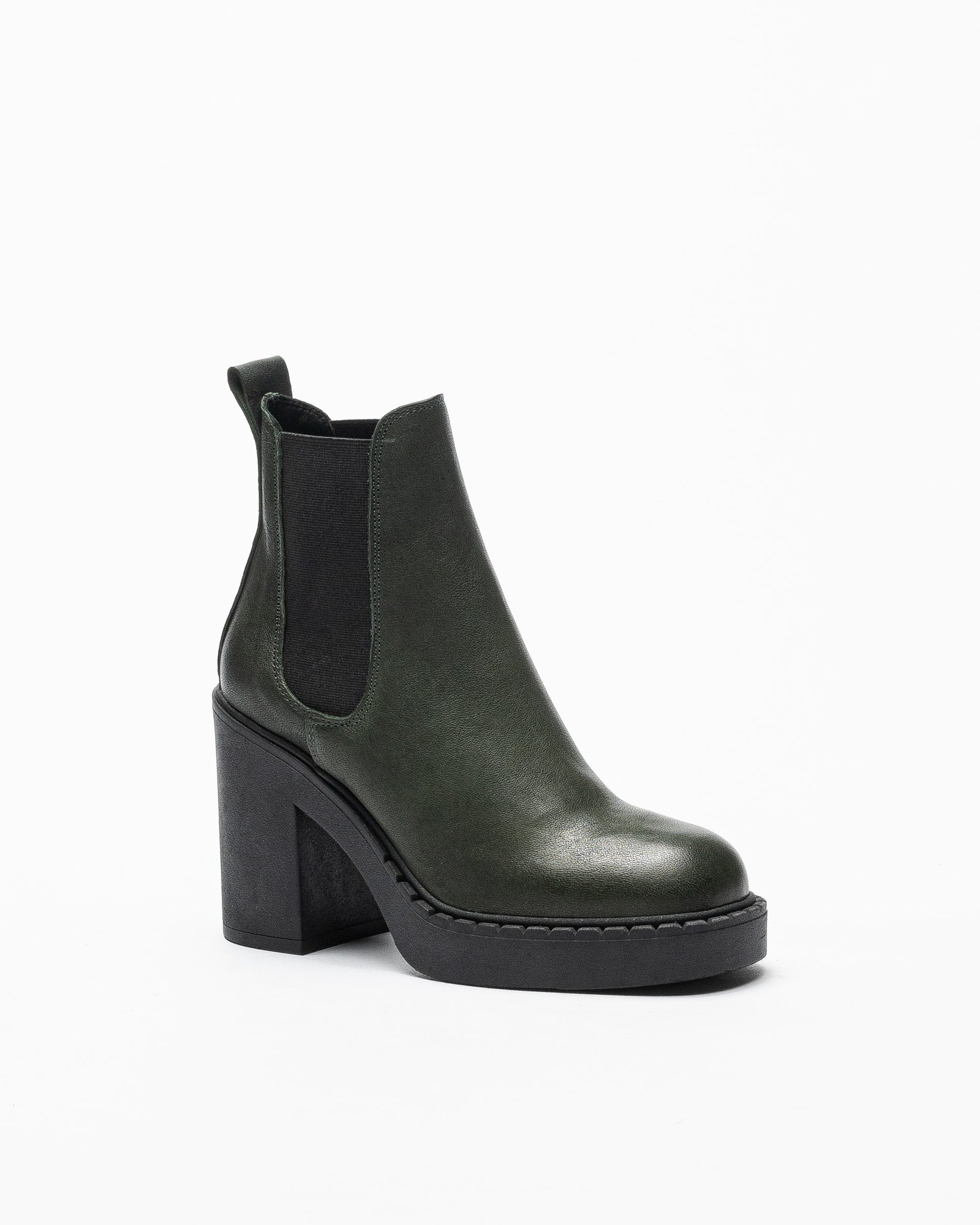 Exterior: Green leather with elastic fabric on both sides. Interior: Leather insole and lining. Sole: Rubber. Heel height: 10.5 cm. Platform: 3 cm. Shaft height: 10.5 cm. Additional details: Made in Portugal. Model: PF507.