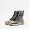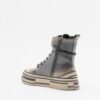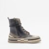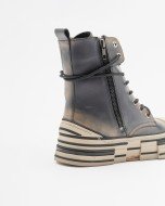 Ankle-strap sneakers in blue leather with an irregular platform sole. Reinforced toe cap, laces, and side zipper closure.