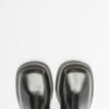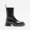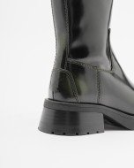 Green boots in polished leather with square toe cap. Running zip on the side.