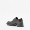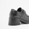 Black leather shoes with a decorative metal buckle. Square toe and Miista branding engraved on the side.