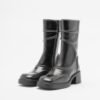 Black boots with square toe and zipper on the side. Contrasting seams on the top.