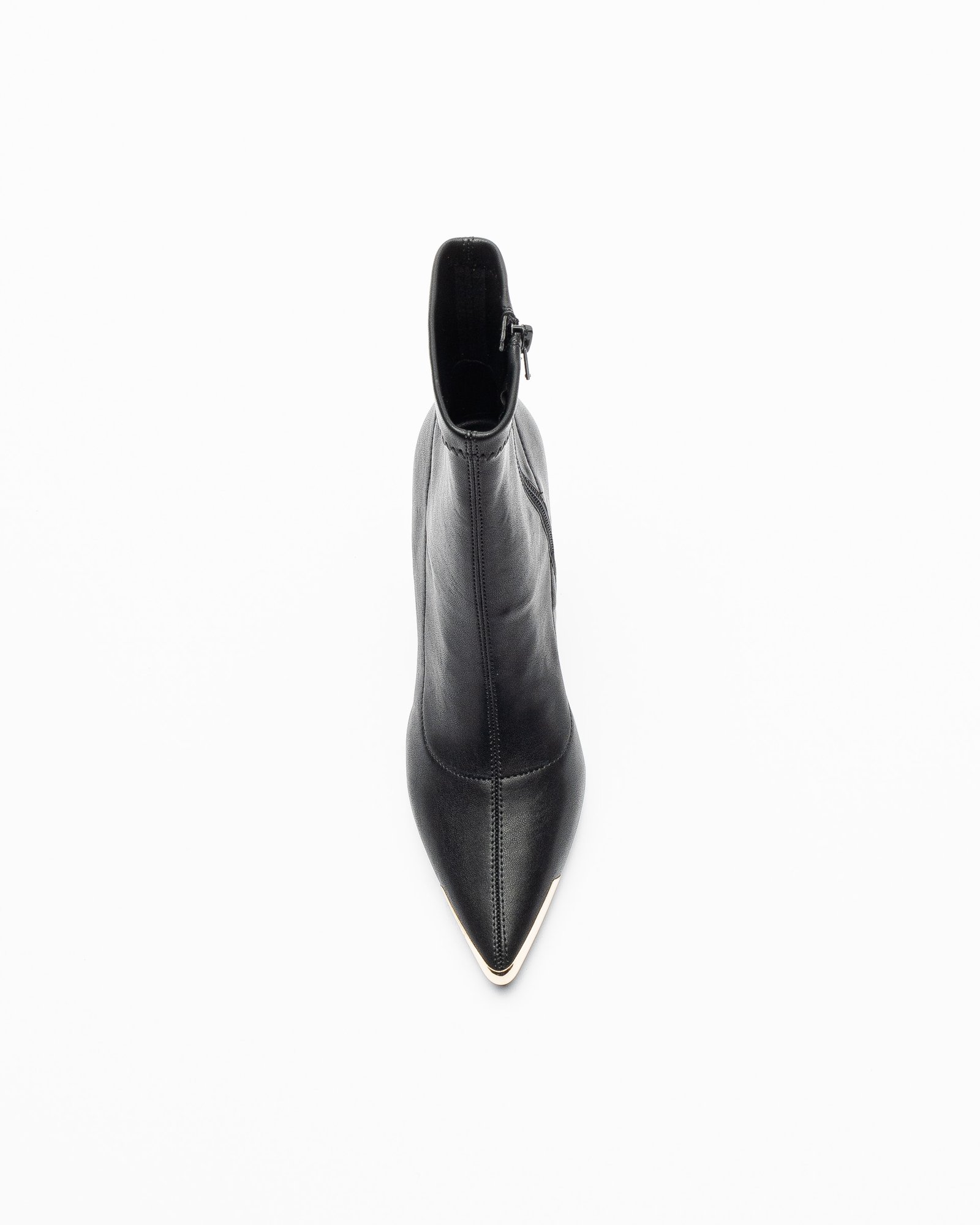 Green ankle boots with suede upper and soft fur lining. Metallic detail on the side and wool embroidery.