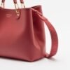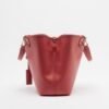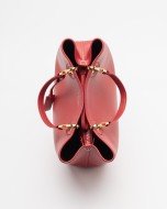 Red faux leather bag with a grained effect and gold details. Wide strap with logo on the inside.