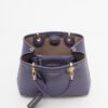 Lilac faux leather bag with a grained effect and gold details. Wide strap with logo inside.