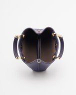 Lilac faux leather bag with a grained effect and gold details. Wide strap with logo inside.