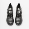 Black shoes with a double buckle on the instep. Crafted in leather with a round toe and circular heel.