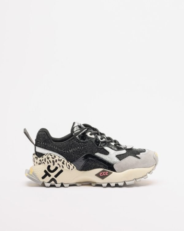 EXÉ sneakers crafted from a mix of materials with an exclusive sole. Upper decorated with rhinestones and metallic details.