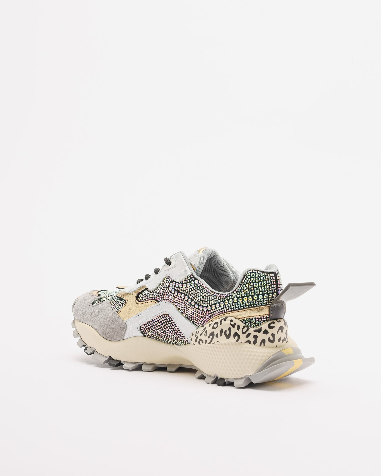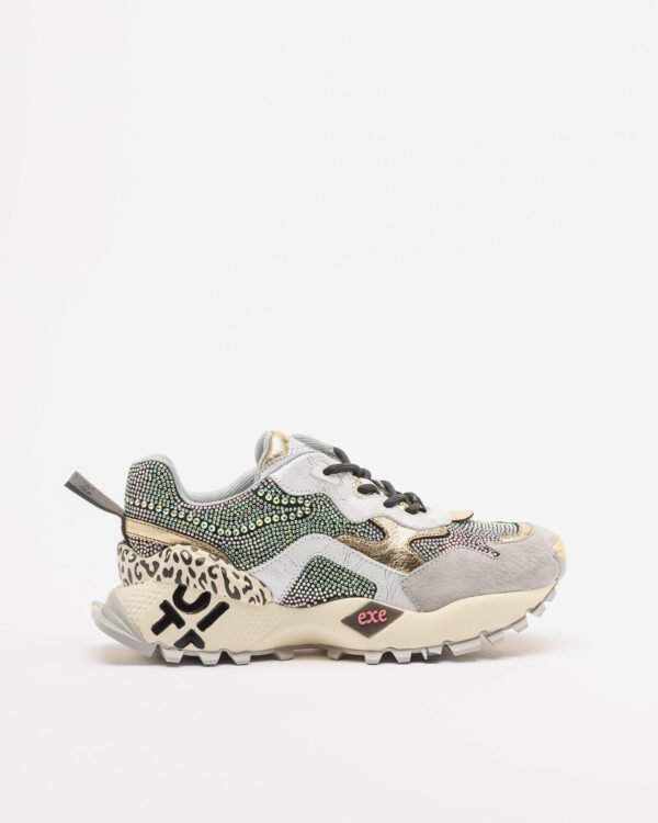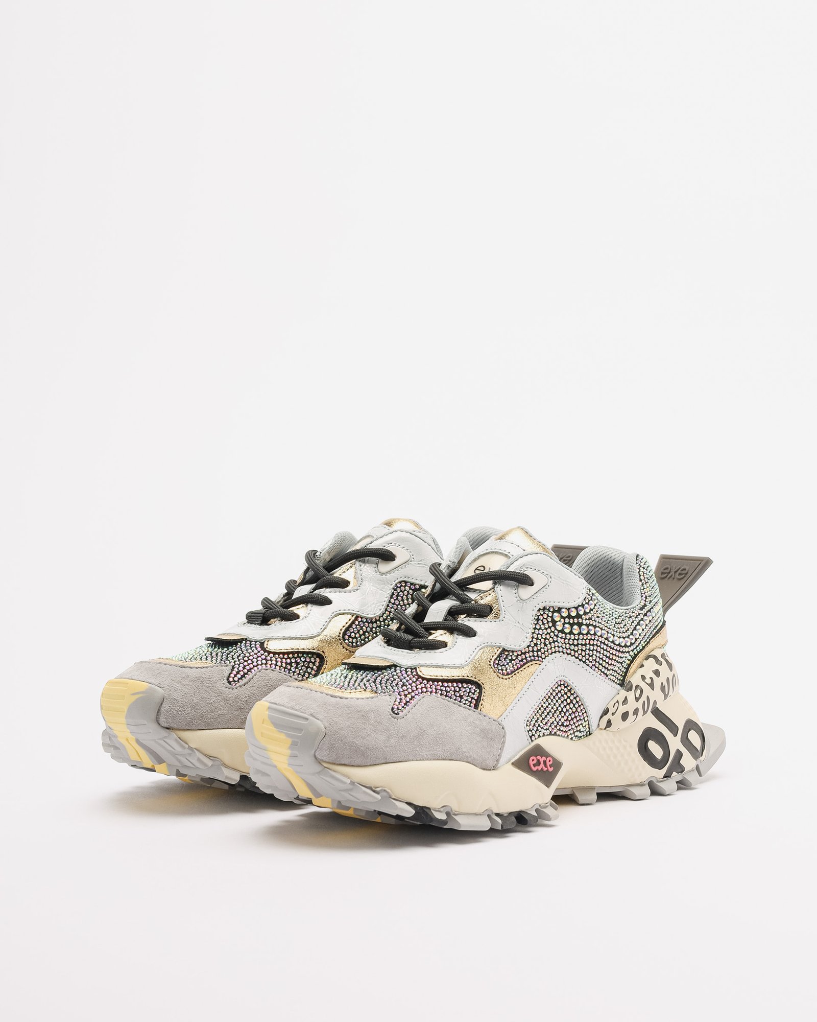 EXÉ sneakers crafted from a mix of materials with an exclusive sole. Upper decorated with rhinestones and metallic details.