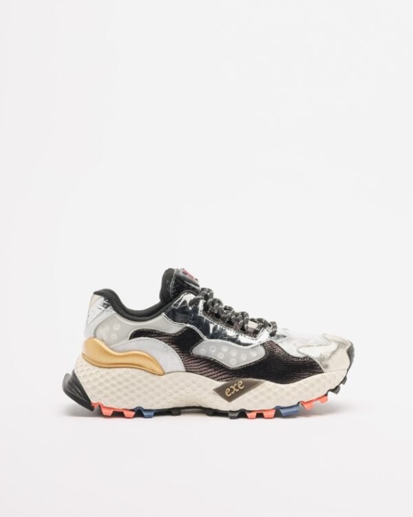 EXÉ sneakers constructed from a mix of materials. Upper with rubber inserts and metallic details.