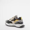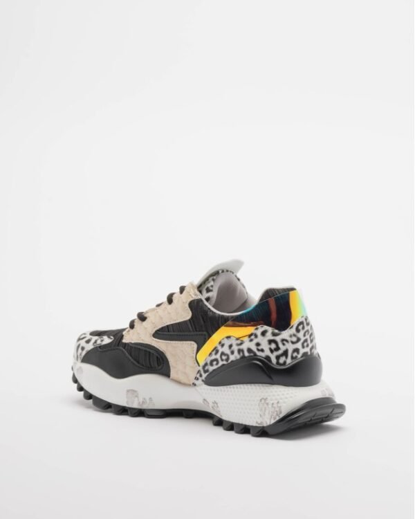 Exé sneakers in a combination of materials, colors, and patterns. PVC detail on the heel with an iridescent effect.