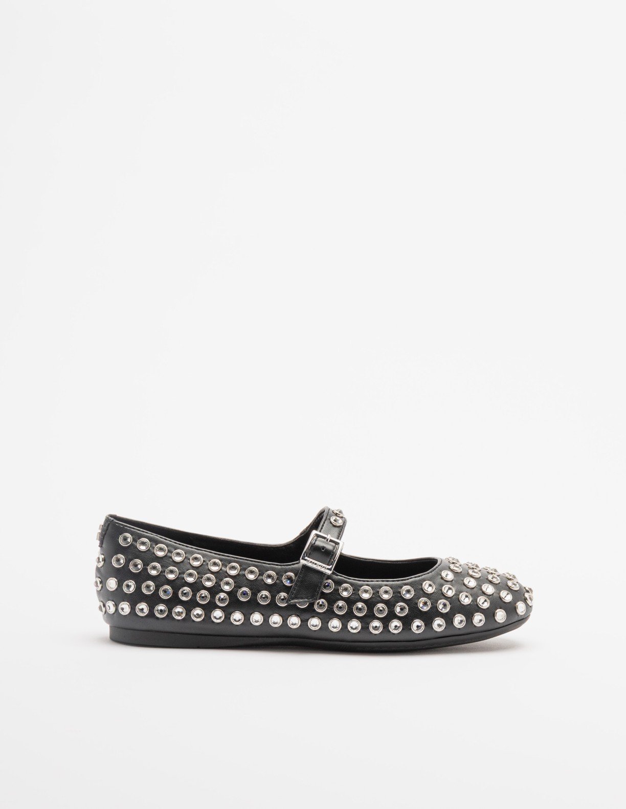 Black synthetic leather pumps with beaded decoration and a strap across the instep. Exclusive GUESS details.