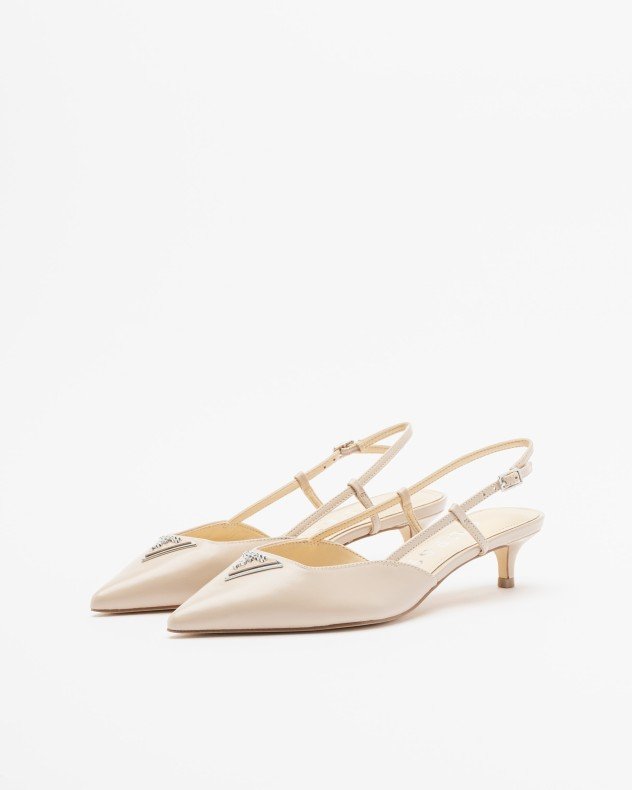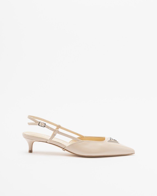Slingback shoe in black leather with GUESS triangle detail on the front.