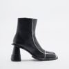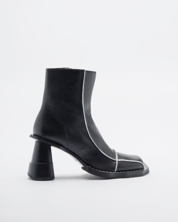 Black Henrik Vibskov ankle boots in premium leather. Square toe, geometric heel and contrasting details.