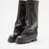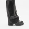 High-top black boots made of leather. Pipe with bending effect and robust sole.
