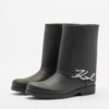 Hunter black low-cut wellies. Made from natural vulcanized rubber with a matte finish, these boots are both practical and stylish. Face rainy days with confidence and a touch of sophistication.
