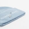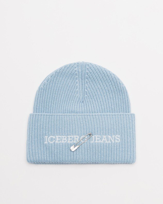 Blue Iceberg Jeans beanie with contrasting embroidered logo detail and decorative pin