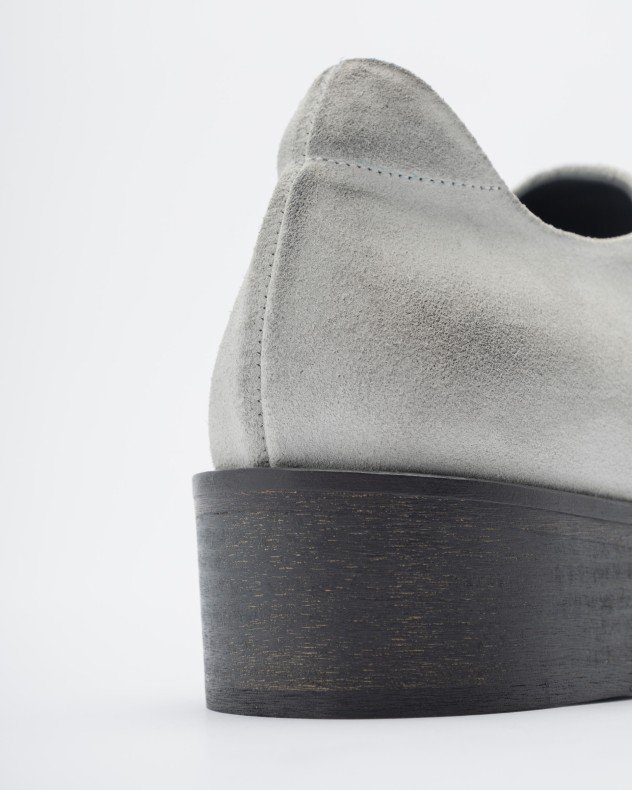 Ixos shoes in white suede with a distressed effect. Mid-heel and slightly square toe.