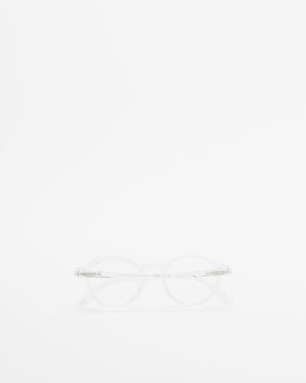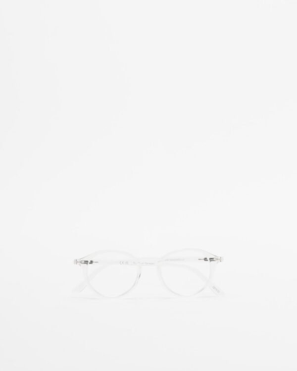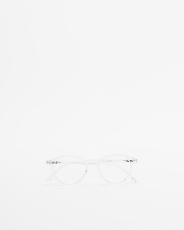 Round-shaped presbyopia reading glasses with a clear frame.