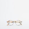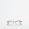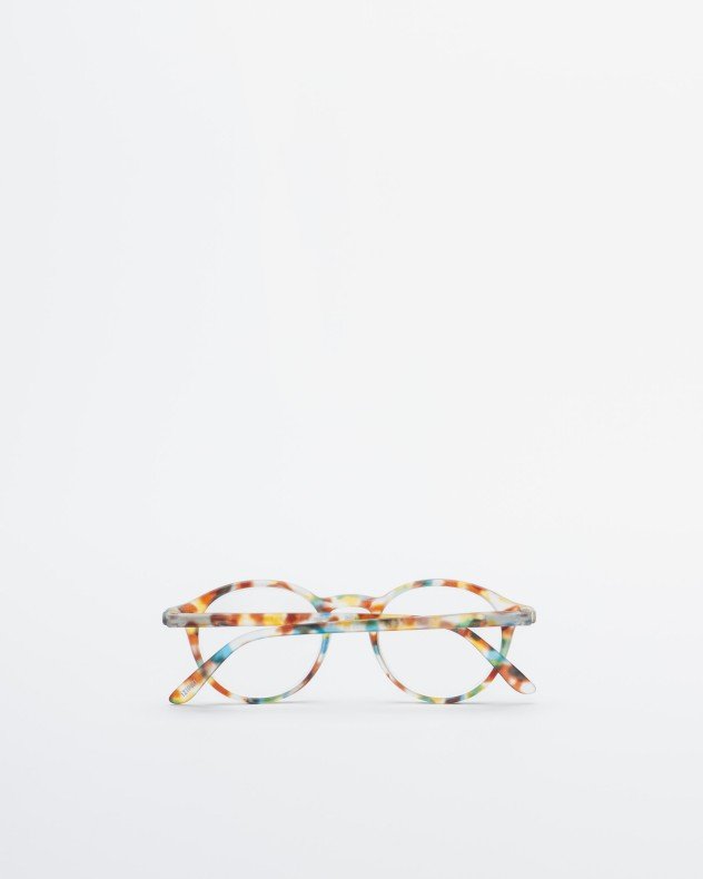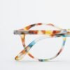 Blue reading glasses for presbyopia with a round shape and tortoise frame.