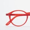Round-shaped reading glasses for presbyopia with red frames.