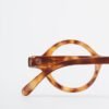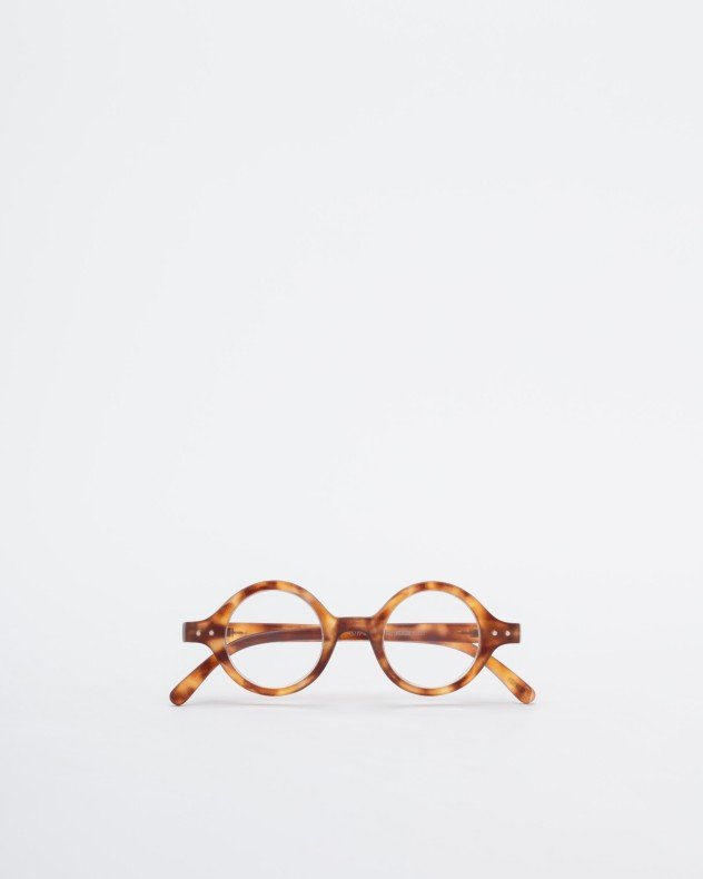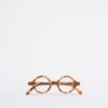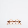 Round reading glasses with Havana camel frames.