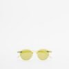 Round shaped sunglasses with crystal green frames.