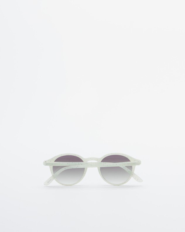 Round shaped green sunglasses with ceramic effect.