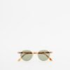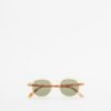 Polarized sunglasses with a round shape, yellow frame and contrasting temples.