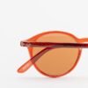 Round shaped sunglasses with transparent red frames.