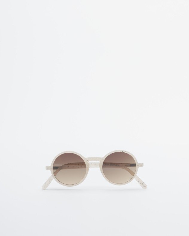 White round sunglasses with ceramic effect frames.