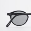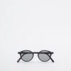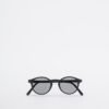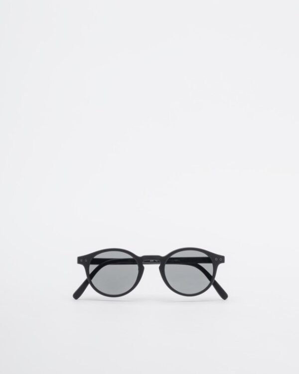 Small sunglasses with a rounded shape and matte black frame.