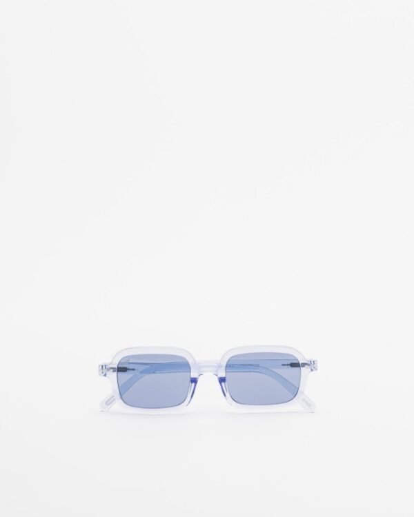Lilac sunglasses with oversized rectangular frames.