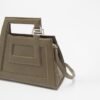 JIJIL military green bag in genuine leather with a grainy effect. Metallic detail representing the brand’s logo on the strap.