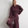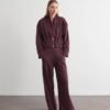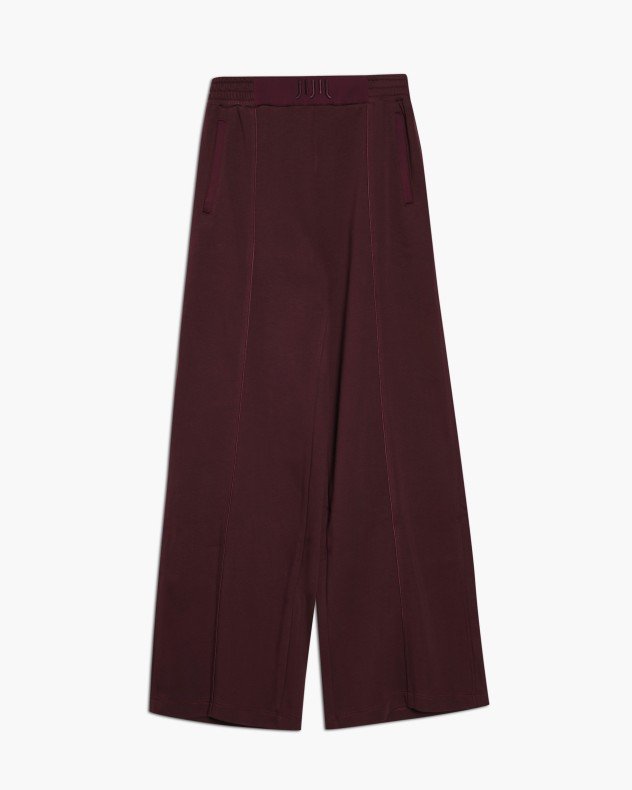 Burgundy JIJIL wide-leg tracksuit bottoms with embroidered logo detail at the waistband. Flare cut with elasticated waist and side welt pockets.