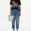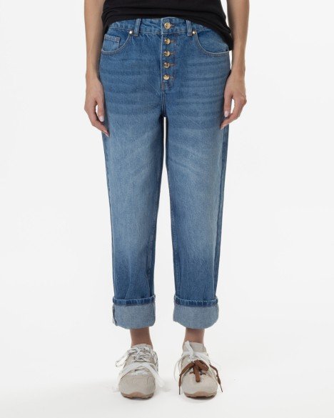 Jeans with a five-pocket design and Just Cavalli embroidery on the back. Gold button fastening and leather emblem on the back.