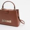 Camel-colored Just Cavalli handbag made of synthetic leather with a Just Cavalli logo detail on the front.