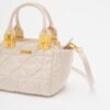 Beige Just Cavalli bag in faux leather with a quilted effect and geometric pattern. Just Cavalli logo on the front and gold details.