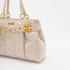 Beige Just Cavalli bag made of synthetic leather with a geometric pattern and quilted effect. Features a decorative gold buckle detail and the Just Cavalli logo.