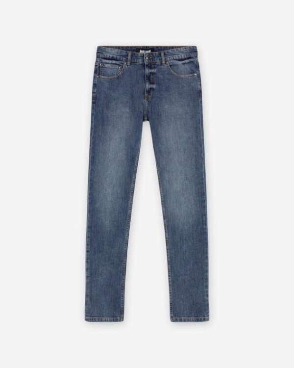 Men’s slim jeans with a washed effect. Black leather patch with Just Cavalli metallic logo on the back.