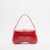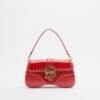 Red crocodile-embossed shoulder bag with gold stud detailing. Metallic Just Cavalli logo on the front.
