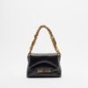 Black bag in soft faux leather with a quilted effect. Gold chain strap with decorative scarf and Just Cavalli logo on the front.