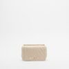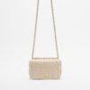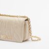 Beige shoulder bag with quilted effect and stitched pattern. Gold chain strap and Just Cavalli metal logo on the front.