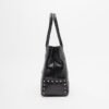Black Just Cavalli bag made of crocodile-effect faux leather. Just Cavalli logo patch and gold metal studs on the front and lower sides.